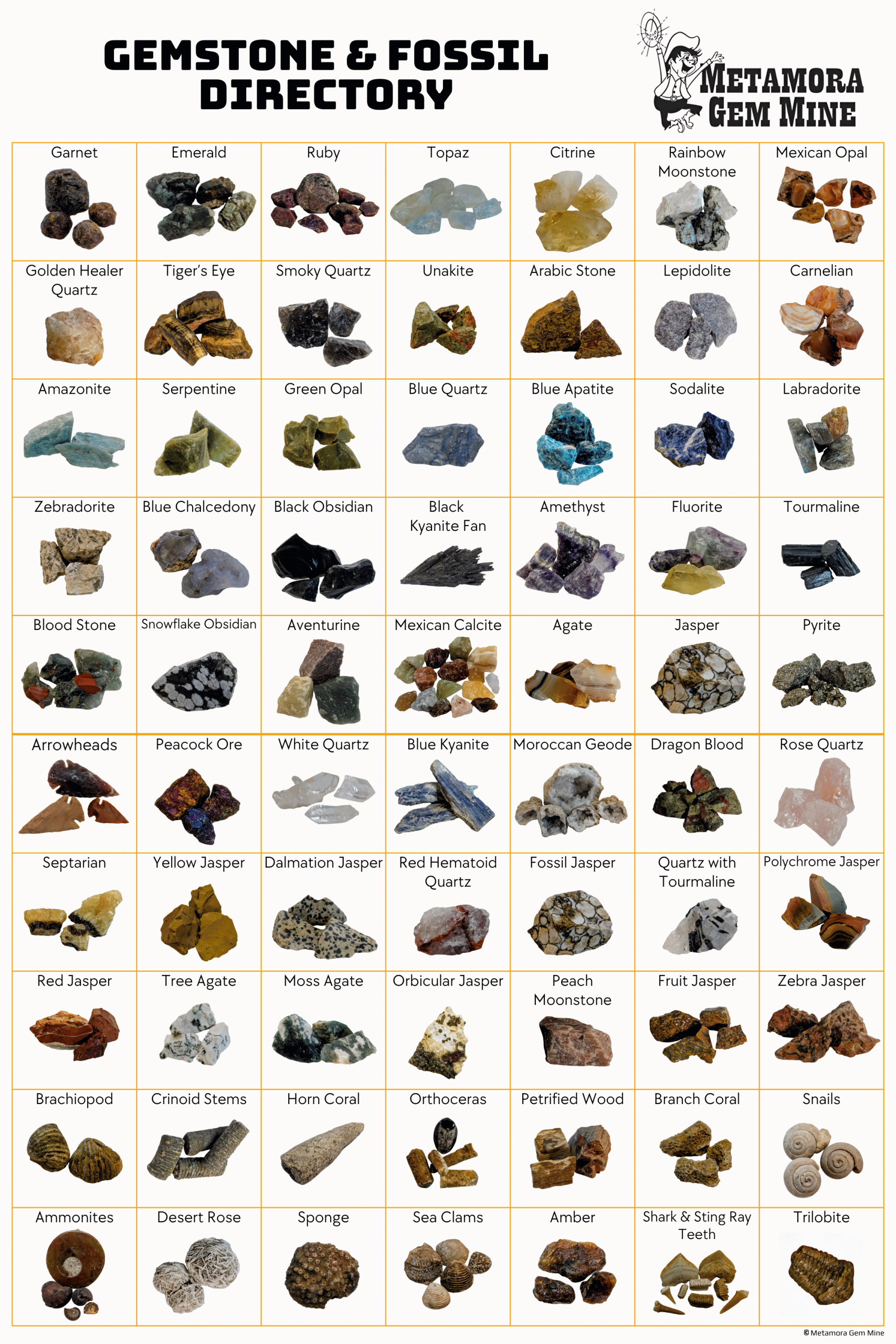 NOTE: Our mining rough inventory is so large and ever-changing that you may find gemstones & fossils that are not on our charts.
